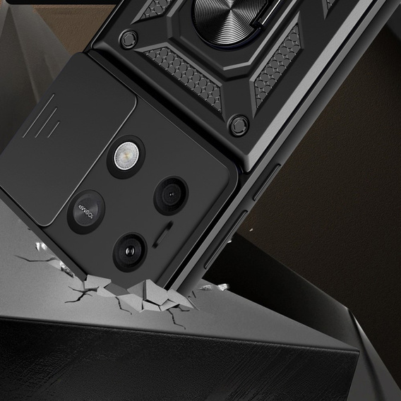 Obal na mobil pre Xiaomi Redmi Note 13 5G, CamShield Slide, čierne s možnosťou stojana a magnetickým úchytom na prsty. Puzdro je vyrobené z vysokokvalitných materiálov, je plne funkčné a poskytuje robustnú ochranu zariadenia. Kryt je vyrobený z plastu a pružnej tvrdenej gumy TPU. Podložka má praktický kovový úchyt na prst, ktorý možno použiť ako príchytku pre magnetický držiak do auta. Puzdro má zosilnené rohy a hrany a spoľahlivo chráni telefón pred poškodením. Dodatočný rám chráni boky a rohy smartfónu a účinne izoluje obrazovku od povrchov, na ktorých leží. Puzdro je vhodné pre konkrétny model zariadenia, má potrebné výrezy a tlačidlá a je plne funkčné.