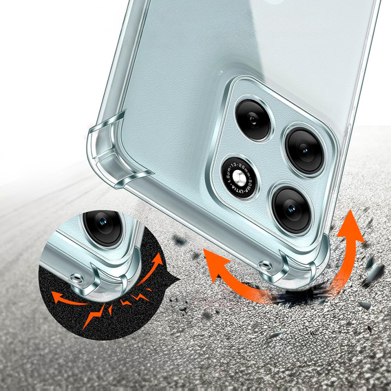Obal na mobil pre Motorola Moto G56 5G, Dropproof, priehľadné je pancierované silikónové puzdro, ktoré kombinuje minimalistický dizajn a špičkovú ochranu. Je vyrobené z odolného a pružného materiálu TPU, ktorý chráni zadnú časť a boky zariadenia. Špeciálne navrhnuté časti/vnútorné komory výrazne zvyšujú úroveň odolnosti proti pádu a nárazu. Výrobok dokonale sedí, je plne funkčný a neobmedzuje prístup k vonkajším portom. Puzdro Dropproof je ideálnym ochranným riešením s minimálnou hmotnosťou a hrúbkou!