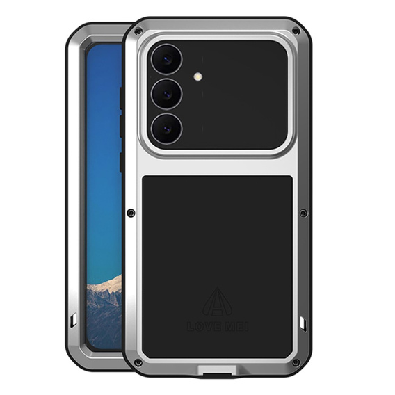 - 1 × puzdro Love Mei pre Samsung Galaxy S25 FE, pancierované sklom, strieborné